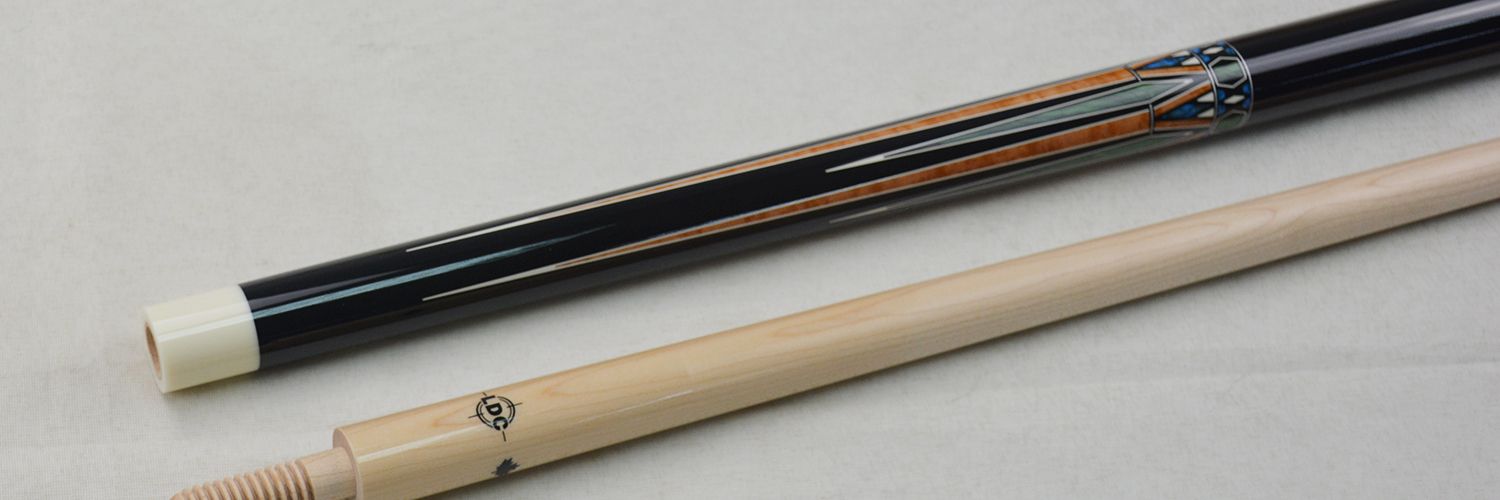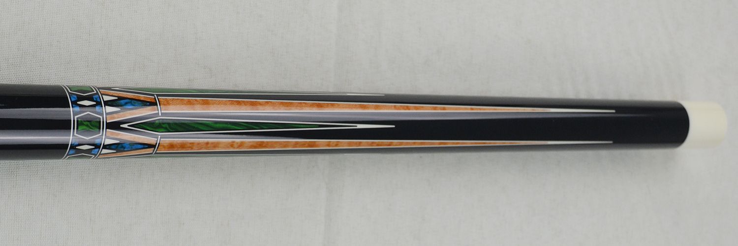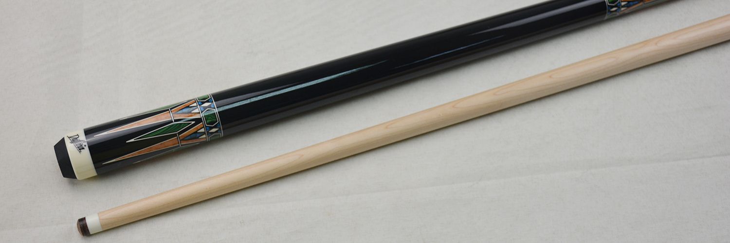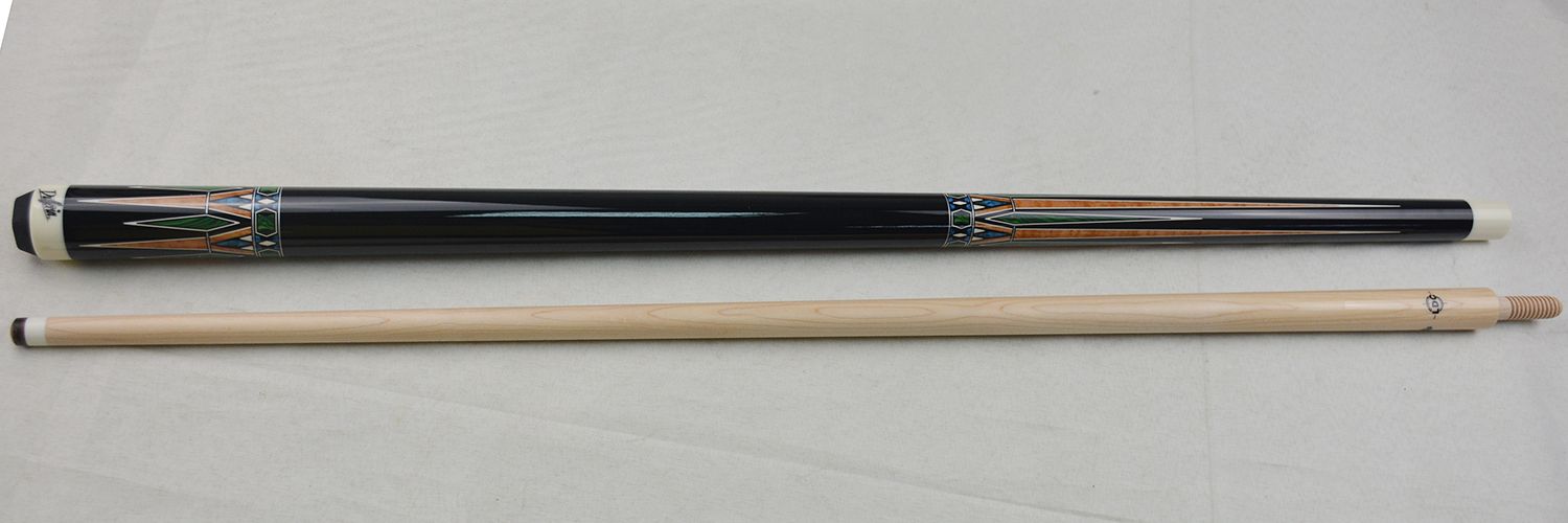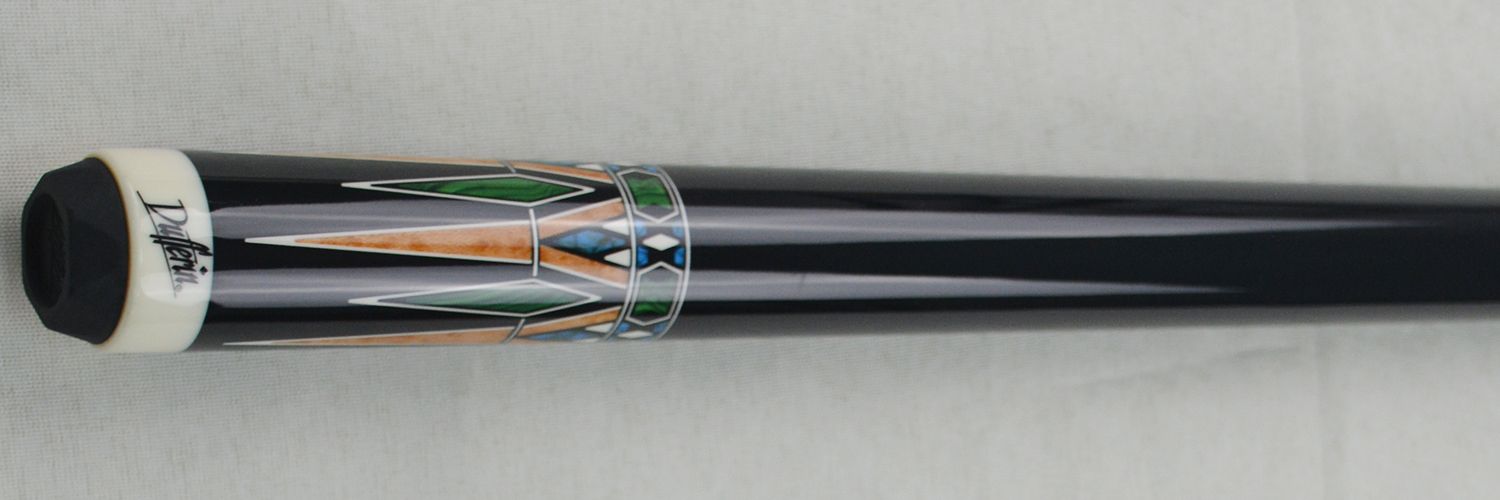 Dufferin Dominus 4 LDC er lavet af ahorntræ af høj kvalitet med et decal i sort, off-white, malakit, blå sten og træ over og under grebet. Køen har et sortmalet greb.