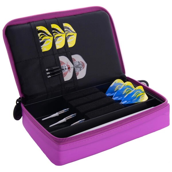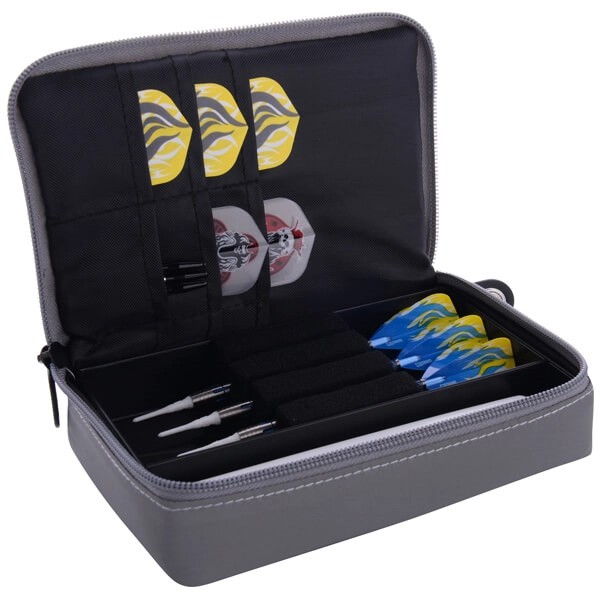 Med rigelig opbevaringsplads kan du nemt have et sæt dartpile, ekstra flights, skafter og meget mere med dig, uanset hvor du er på farten.